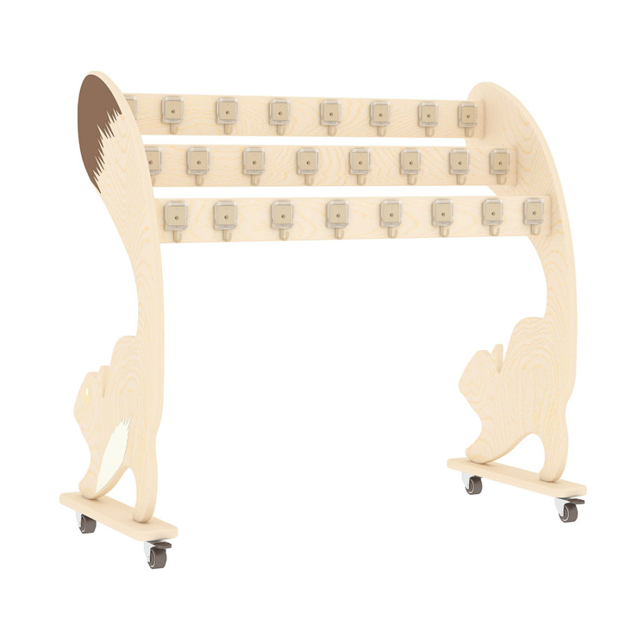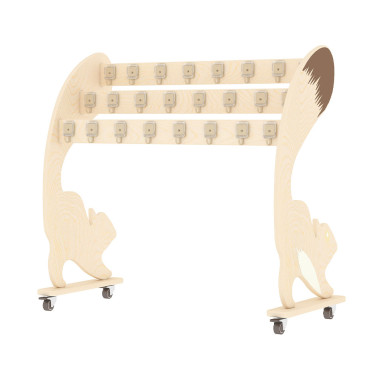 Appendino in legno con route a froma di scoiattolo per appendere asciugamani. Ideale per ludoteche, scuola, nido, spogliatoio.