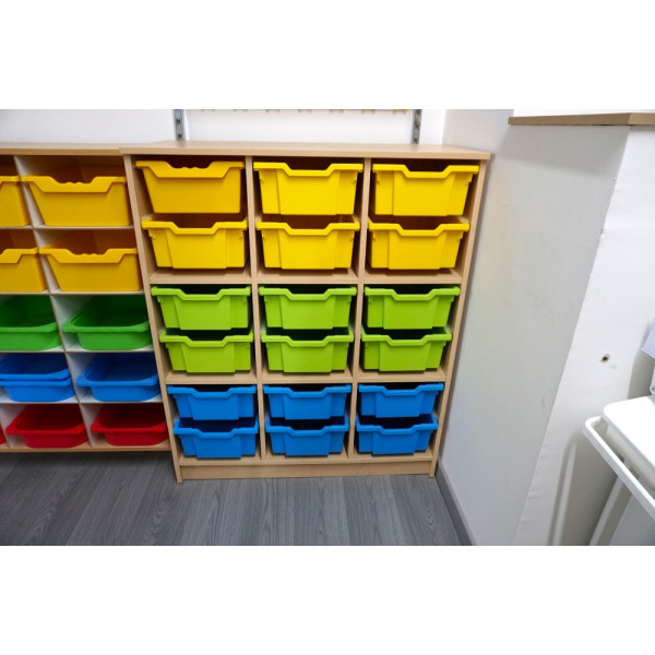 Mobile a 9 caselle con vaschette doppie. Ideale per contenere giochi, strumenti, articoli di cancelleria, colori e molto altro.