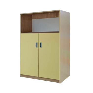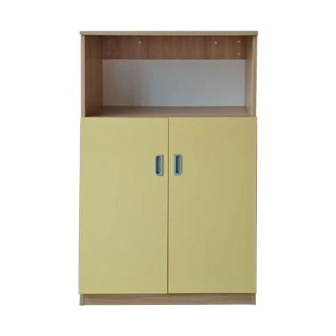 Mobile basso con ante colore betulla. Ideale per contenere giochi, strumenti, articoli di cancelleria, colori e tanto altro.