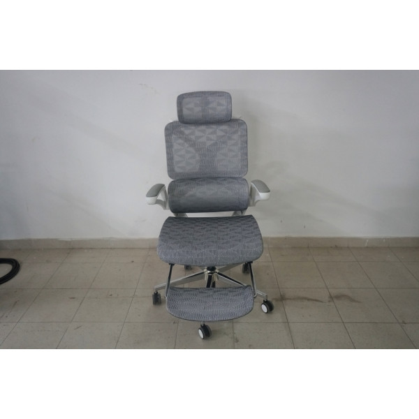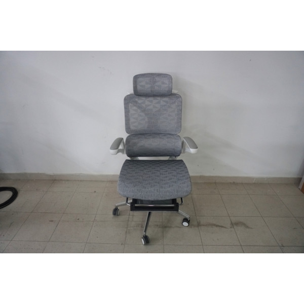 Comoda sedia da ufficio direzionale in rete, dotata di poggiatesta regolabile, girevole con funzione di inclinazione e design ergonomico.