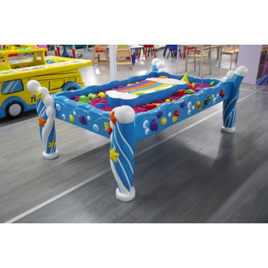 Questo bellissimo tavolo in resina è composto da una vasca che può contenere sabbia cinetica o acqua per far divertire i bambini. La sabbia cinetica consente di giocare e creare forme come si farebbe in spiaggia però restando puliti e seduti comodamente vicino al tavolo. Ideale per ludoteche, scuole, nidi, ecc..