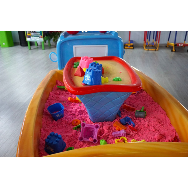 Questo bellissimo tavolo in resina è composto da una vasca che può contenere sabbia cinetica o acqua. La sabbia cinetica consente di giocare e creare forme come si farebbe in spiaggia però restando puliti e seduti comodamente vicino al tavolo. Ideale per ludoteche, scuole, nidi, ecc.