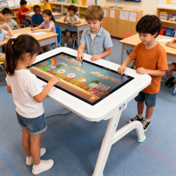 Sul piano superiore è incassato uno schermo touch screen da 32" multi-tocco che consente l'attività contemporanea di più utenti, facilitando così la collaborazione, la socializzazione e il lavoro di gruppo.